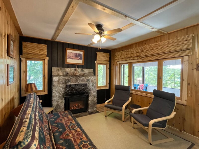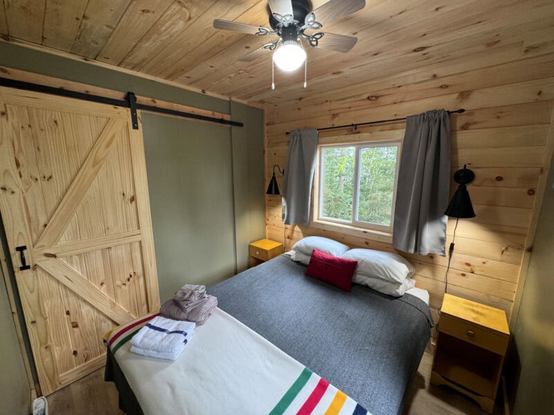Our cabin features sustainably harvested local red/white pine & cedar finishes, authentic décor, traditional artwork, Hudson Bay Blanket display and Voyageur-Indigenous memorabilia which amplifies this unique getaway.